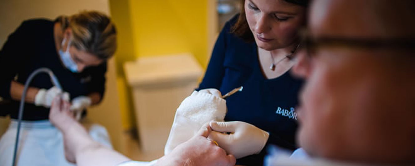 Damit wir Ihnen eine angenehme Behandlung mit bestöglichem Ergebnis garantieren können, arbeiten wir ausschließlich mit modernster Nasstechnik. Unsere Fußpflege Klassisch beinhaltet ein warmes Sprudelfussbad, Entfernung von evtl. Problemstellen wie z.B. Hühneraugen, eingewachsener Zehennägeln, und Verhornungen (Hornhaut), sowie einer abschliessenden entspannenden Fussmassage.